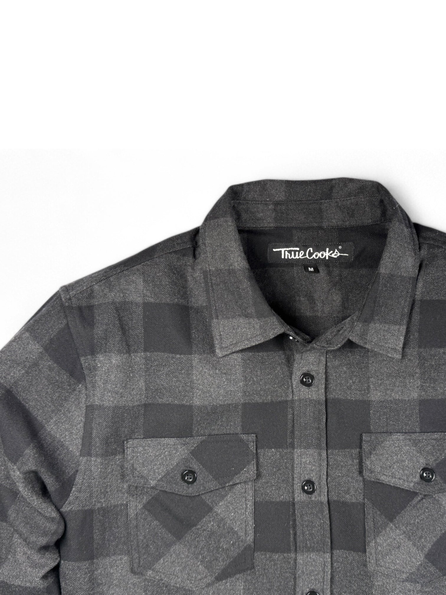 Charcoal grey & black cotton poly flannel blend | double chest pocket | woven mini label | available in sizes medium through 3XL